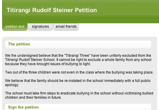 Please sign our online petition asking for the re-instatement of our children and a public acknowledgement that the school’s behaviour has been inhumane, extremely damaging to a well-meaning family and unnecessarily traumatising to three innocent children.