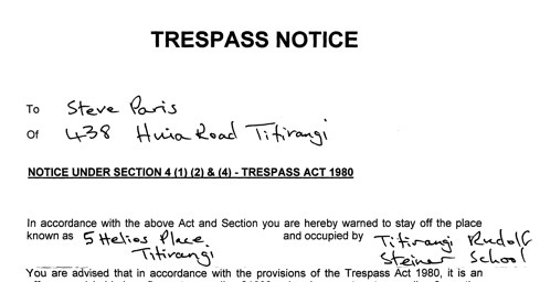 It’s hardly surprising that parents are suspicious of us if Trustees are prepared to put it about that we have been subject to several “restraining orders” which necessitate application to a judge to obtain, instead of a simple Trespass Notice which any Tom, Dick or Mark can issue on a whim (especially if they don’t want people to know that a child was threatened with an axe on school property).
